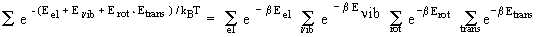 | The molecular partition q function is written as the product of electronic, vibrational, rotational and translational partition functions. |