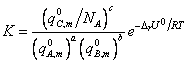 This is an expression for the equilibrium constant for reaction (29.64) in terms of the partition functions of reactants and products and the reference values of their energies U0. This can be very easily generalized to reaction of all stoichiometry.