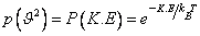 The dependence of the probability of the earlier section on molecular speed can be re-expressed alternatively in terms of kinetic energy K.E = 1/ 2 m 2. The probability . The gas molecules in an ideal gas possess only kinetic energies and the dependence of the probability on and on K.E are equivalent. However, in a general case, molecules possess both kinetic and potential energies (PEs) and the total energy E = K.E + P.E. Boltzmann generalised Maxwell's result for only KEs to include all energies and the probability distribution for energies, P(E), is called the Boltzmann distribution and is given by, |
