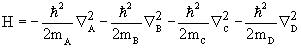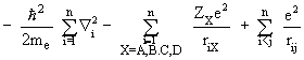 is the kinetic energy operator for electron i, riX is the distance between electron i and nucleus X and rij is the distance between electron i and electron j. Since the nuclei are held fixed, the nuclear kinetic energy operator terms will be set to zero. |