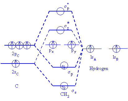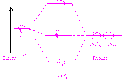 s and ) of electrons and two unpaired electrons (in px and py; which are non bonding) to give CH2 the free radical character. In XeF2 (fig 9.3 (b)), the paired electrons in a 2p orbital of Xe interact with two electrons (one each in a px orbital of each F) of F to give two pairs of bonding electrons.