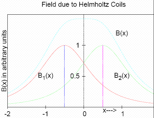 It can be seen that the field along the axis is nearly uniform in the region between the coils.