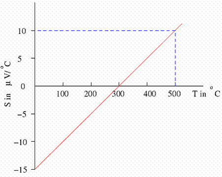 A chromel-constantan thermocouple with the cold junction at  C has a linear variation of the open circuit voltage for temperatures of the hot junction between  C and  C. Calculate the thermo-emf when the hot junction is maintained at  C. [ Hint : Emf is zero when both the junctions are at the same temperature] (Ans. 9.5 mV) |