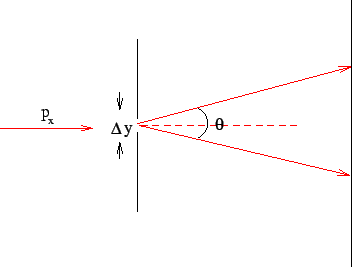 Due to the uncertainty in the position of the electron along the slit direction (y-direction), there is a momentum spread along the y-direction, given by |