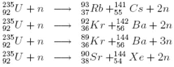 Various fragments that are produced by fission of