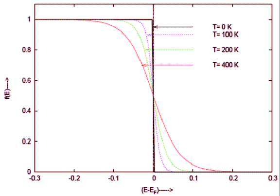 is 1/2. Thus one of the ways in which Fermi energy can be defined is the energy level where half of the available energy states are filled.