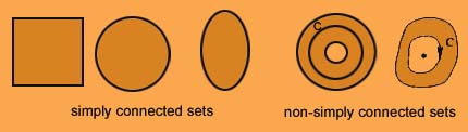 A more mathematically rigorous definition of simple connectedness is the following. Let be connected. We say is simply connected if given any two points and in and any two curves and in ,