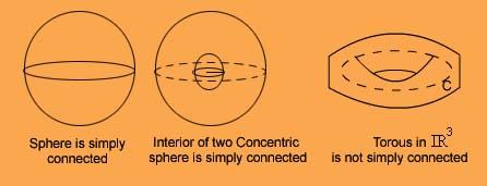connected. Torus is not simply connected. For example, in the figure below, the curve is not the boundary of any surface in .