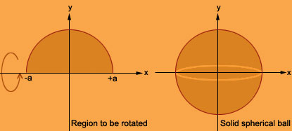 A solid spherical ball of radius can be generated by revolving the semi-disc |