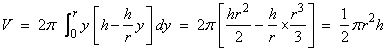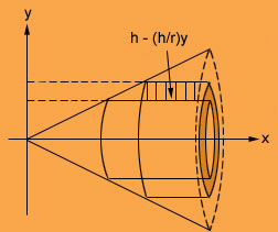 A solid cone of height and radius is obtained by revolving about the -axis the triangular region bounded