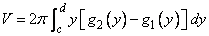Suppose and the region is revolved about the -axis, then analogous to equation (15), the volume of this solid of revolution is given by .