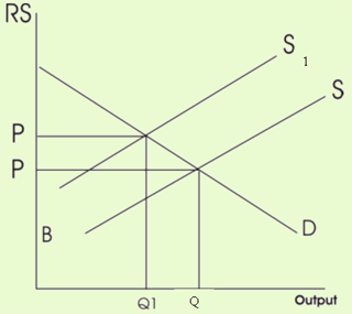 Industry’s supply curve is horizontal summation of all individual firms supply curves (MC curves). It also shifts upward from S to S 1 as shown in Figure 11. D represents demand the commodity. Industry’s output is reduced from Q to Q 1 as a result of adoption of regulating system of pollution control. Buyers would have to pay higher price for the product: Market price increases from P to P 1.