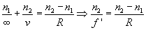 | Position of Object and Image - (Fig.8.1.5) The positions of object (u) and image (v) are related to the radius of curvature (R) of the surface and the refractive indices (n1n2) of two media as Where R is the radius of curvature of curved surface. If the object is brought closer to the primary focal point, the image is shifted away from the vertex. For Objects placed at infinity ( Similarly if the object is placed at the primary focal point (u=f), the image is formed at infinity |