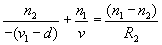 | The incident ray from object when incidents at the first surface undergoes refraction. If there is no second surface, then the position of image in medium n2 will be given as The image formed by refraction at first surface will act as object for the refraction at second surface. If 'd' is thickness of lens, or |