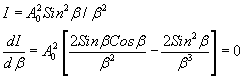 | Now, let us see, when we will observe maxima in diffraction pattern. At the center of screen, the path traveled by the secondary waves originating from one point of slit is same as that traveled by another wave on the opposite side of center of slit at the same distance and hence path difference is zero, ie all the waves meet in phase thus we observe a maxima at this point (Fig 3). This can also be seen mathematically for the intensity distribution equation for point Now we will determine the position of the maxima. |