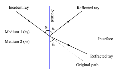 | Let us consider an interface formed by two dielectric medium I and II of refractive index n1 and n2 respectively as shown in fig 1.In the previous lecture we summed up the properties of electromagnetic waves and its representation. In this lecture we will be looking into the modification which an EM wave under goes when it strikes the interface of two dielectric medium.