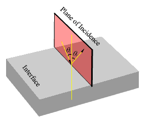 - The plane of the incidence containing the incidence ray, the reflected ray and the normal to the interface as shown in figure 2 and