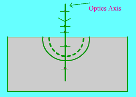 Both the s and p waves will travel with the same speed. One can show the wave front by drawing a circile of radius c/no with the center at the interface at point O, where the radiation is hitting the interface as shown in fig. The wave front will be spherical corresponding to both the components, . The situation will be similar to that of isotropic medium.