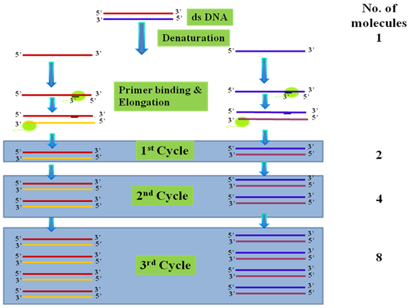 1. Initial denaturation: Heating the PCR mixture at 94°C to 96°C for 10min to ensure complete denaturation of template DNA. It is followed by the cyclic events which has different steps as described below: