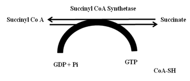 STEP 6: Oxidation of Succinate to fumarate-Succinate dehydrogenase, a flavo protein catalyzes conversion of succinate to fumarate with the production of FADH. One molecule of FADH is generated which will give 2 ATP molecule after oxidative phosphorylation.